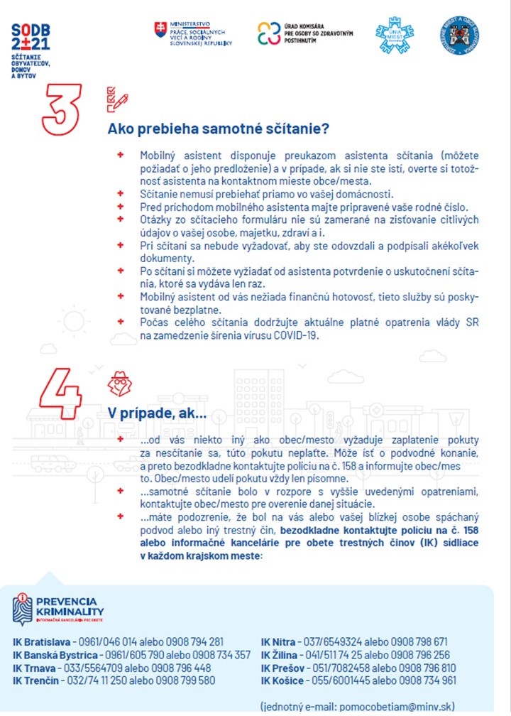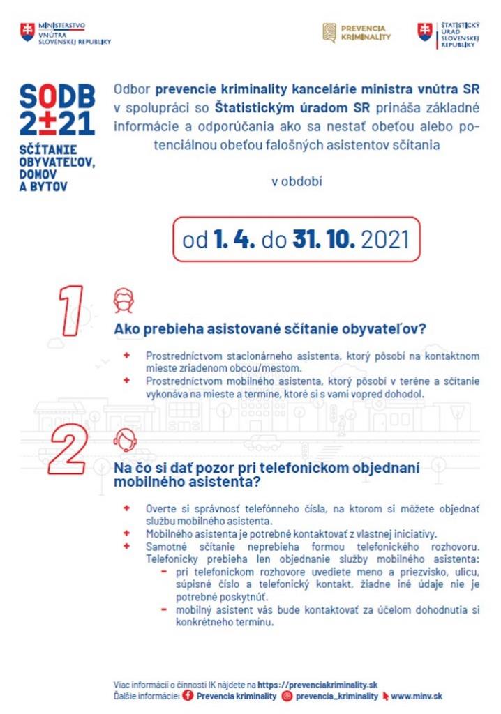 informácie a odporúčania ako sa nestať obeťou alebo potenciálnou obeťou falošných asistentov sčítania