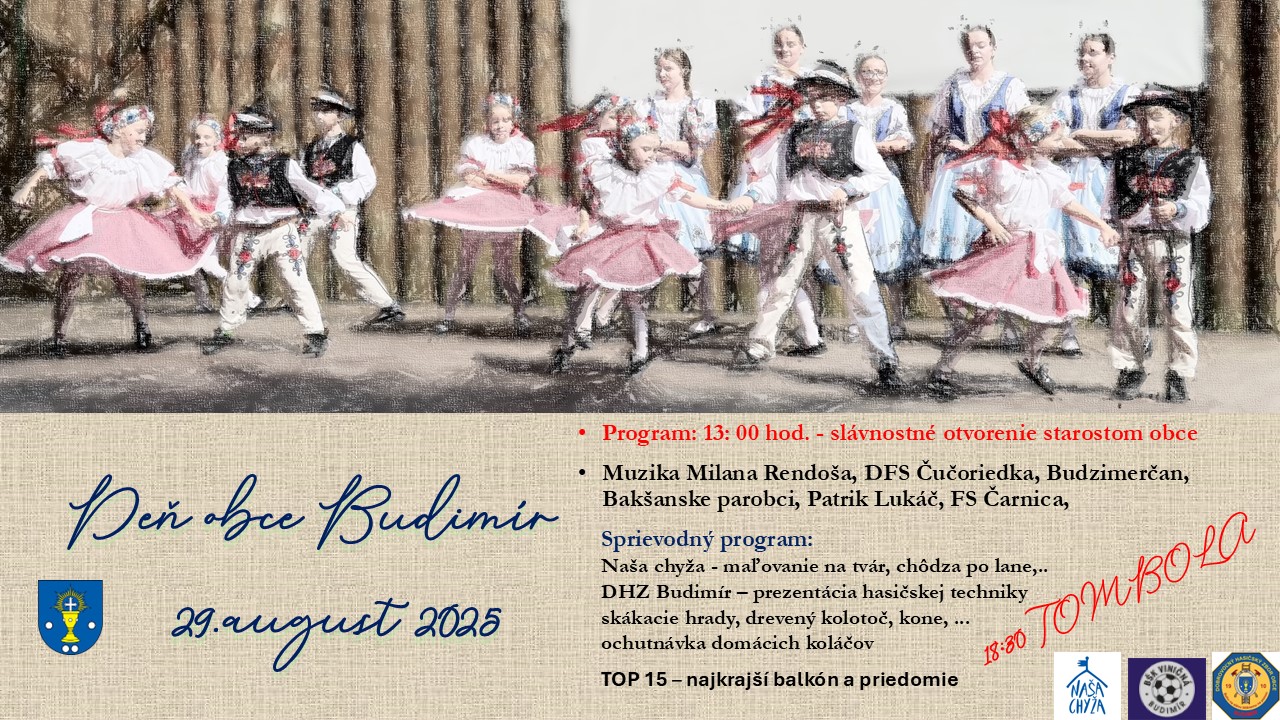 Srdečne Vás pozývame na Deň obce Budimír, ktorý sa uskutoční  29.augusta 2025 so začiatkom o 13-tej hodine.