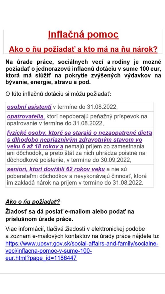 Informácie - inflačná pomoc, ktorú poskytujú úrady práce, sociálnych vecí a rodiny.