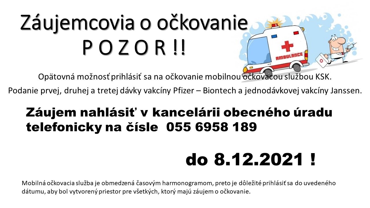 Váš záujem nahlásiť telefonicky na obecnom úrade.