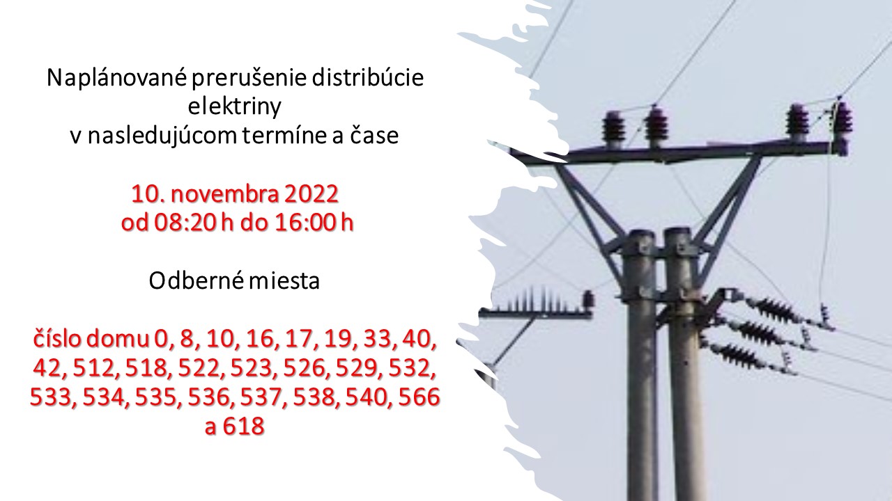 OZNAM o prerušení dodávky elektriny v časti Beniakova Podhora