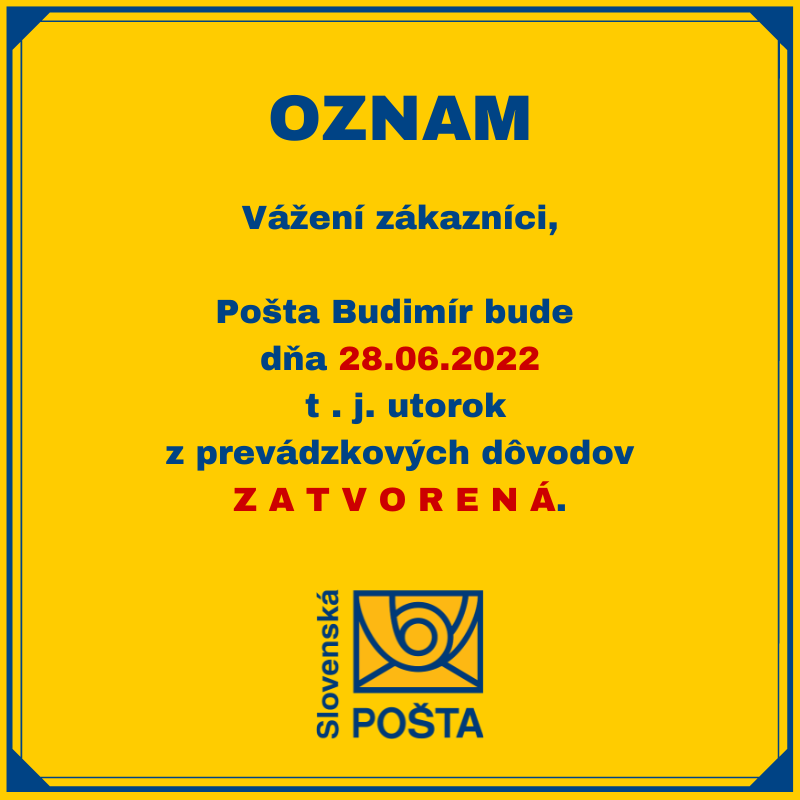 Pošta Budimír je dnes - 28.06.2022 ZATVORENÁ z prevádzkových dôvodov.