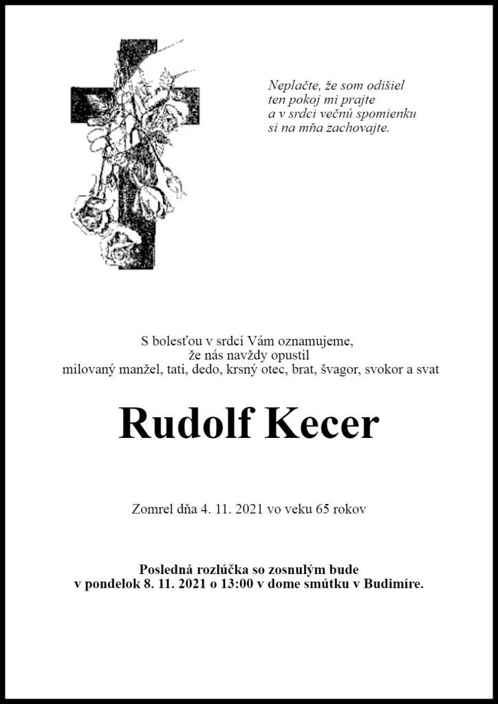 Posledná rozlúčka s pánom Rudolfom Kecerom st. bude 8.novembra o 13:00h v Dome nádeje v Budimíre.