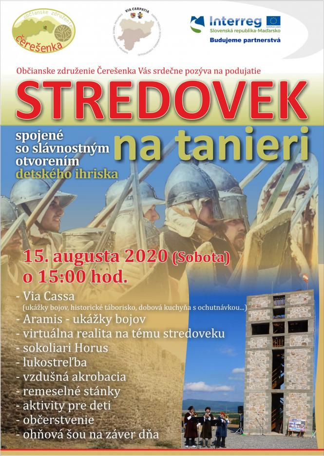 Občianske združenie Čerešenka Vás srdečne pozýva na akciu "Stredovek na tanieri", ktorá sa uskutoční v sobotu 15.08.2020 od 15-tej hod.