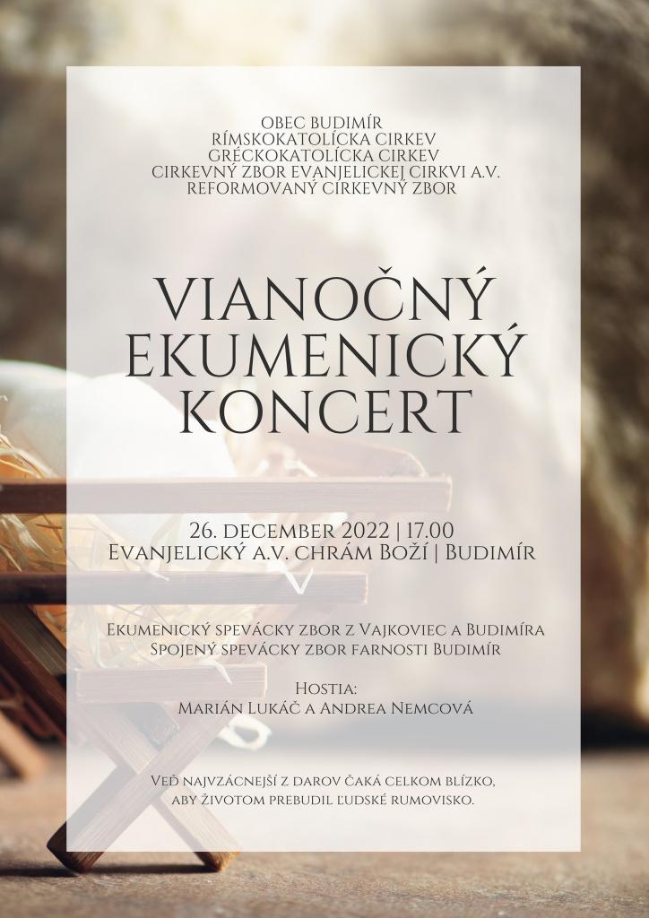 VIANOČNÝ EKUMENICKÝ KONCERT 26. DECEMBER 2022 / 17:00 / BUDIMÍR / EVANJELICKÝ A.V. CHRÁM